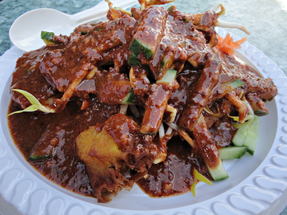 As well, the rice noodles are thick and white, rather than thin and transparent.