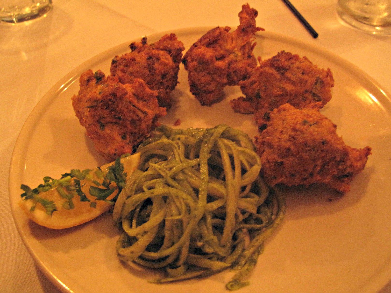 Lamb keftethes ($19) are three plump, generously sized lamb meatballs, deliciously chewy and well-seasoned, with a fine tzatsiki, pita bread that is both crisp and chewy and good salad components.