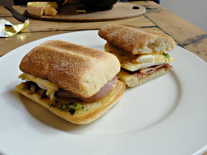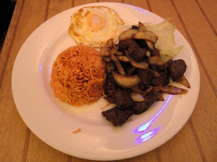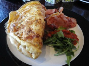 There’s heaps of smallish but delicious pieces of steak, bacon rashers, a fried egg and a goodly sausage, all smothered in dark gravy. And none of the lamb chop or cutlet we have been expecting.