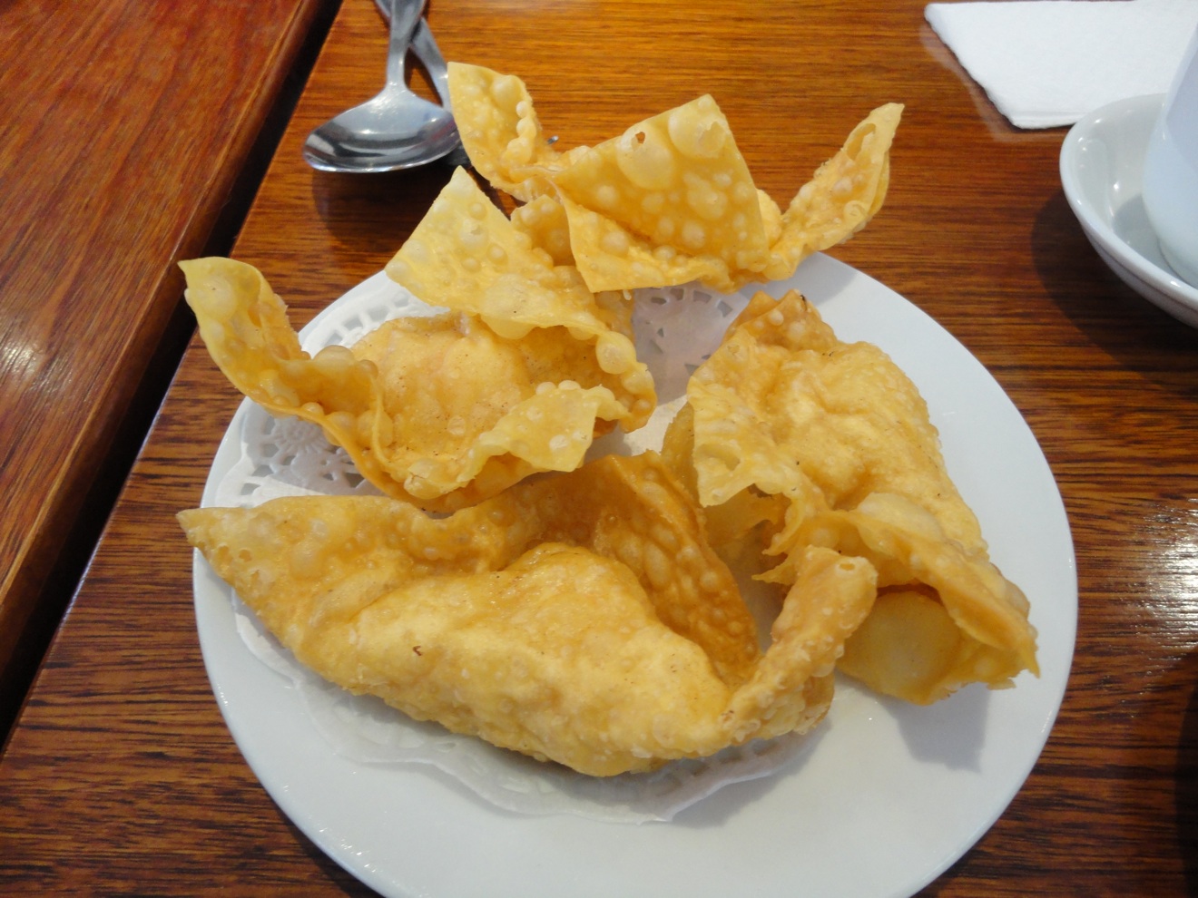 We start with trolley-derived deep-fried won tons ($4.80).